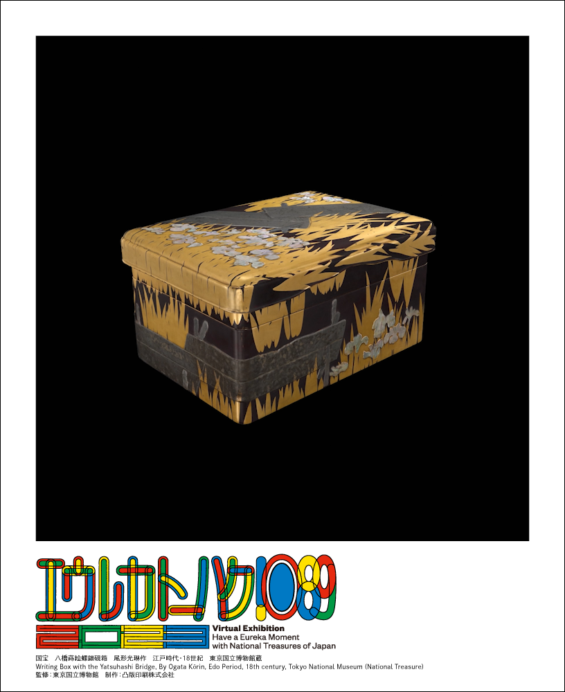 アルキメデスは浮力を発見した際に「エウレカ!」と叫んだといいます。「◎」は東京国立博物館の発行する出品目録などの中で、国宝を表す記号として使われています。「!◎89」は「1089=トーハク」になぞらえています。この展示名には、長い時代伝えられてきた東京国立博物館が所蔵する国宝89件=「◎89」を見つめ、あなた自身の発見をして「エウレカ!」と叫んでもらいたい、という思いが込められています。
