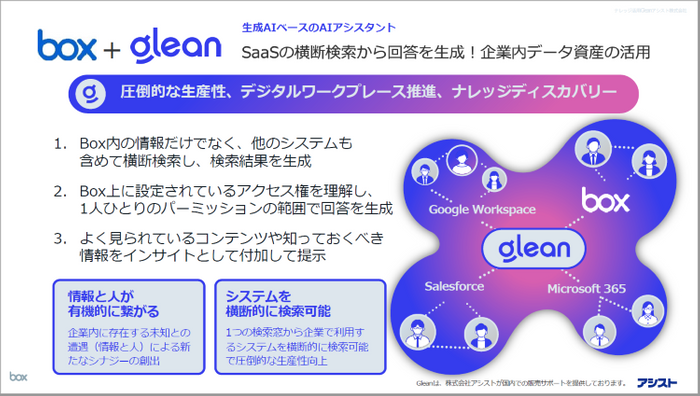 アシスト、生成AIアシスタント「Glean」と「Box」を組み合わせたエコシステムソリューションでBoxユーザーを強力に支援