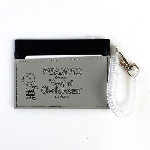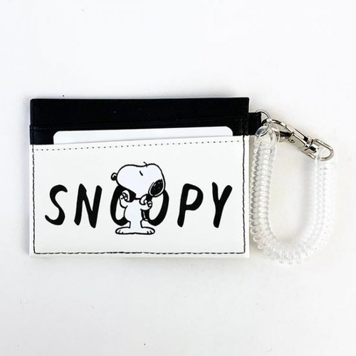 スヌーピーのシングルパスケースに、クールなブラックカラーが登場。デザインもシンプルなので、男女問わず使えます。薄くて携帯しやすいうえに、伸縮コード付きで便利です。