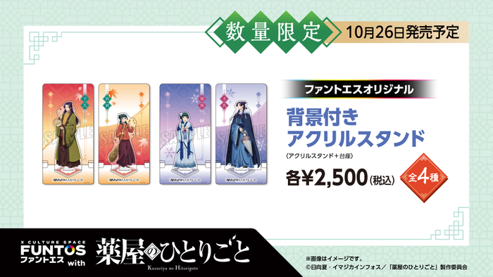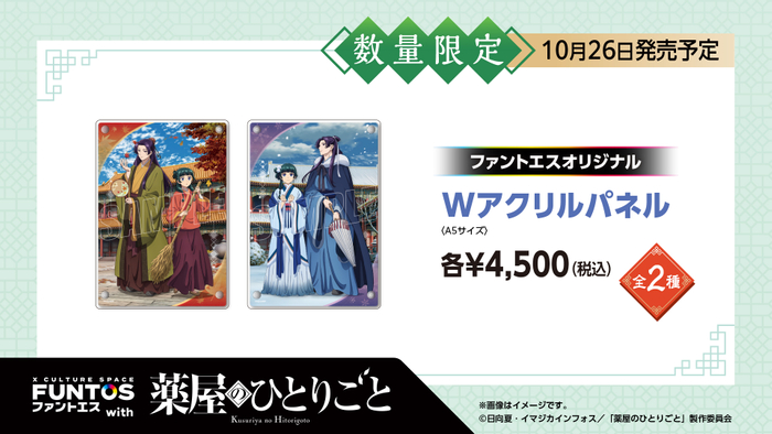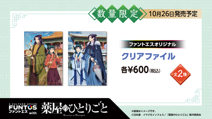 株式会社ソユーは、コラボレーションスペース事業「ファントエス」最新弾として、後宮を舞台に「毒見役」の少女が様々な難事件を解決する『薬屋のひとりごと』のTVアニメ放送に合わせ、全国のファントエスおよびオンラインショップにて2023年10月26日(木)~2023年12月19日(火)の期間限定でコラボを開催いたします。