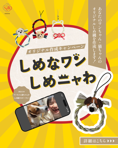 しめ縄(しめなわ)とは、神社の鳥居や神棚、注連柱などに張られ、神域と現世を隔てる結界を示す縄のことです。昨今では“お正月飾り”として強く認識をされていますが、お正月以外でも楽しんでいただける機会を創出したいと思い、秀〆では新たなスタイルのしめ縄を今後展開していこうと考えております。第一弾として、ペットをモチーフにした「ペットしめ縄」を展開することにいたしました。