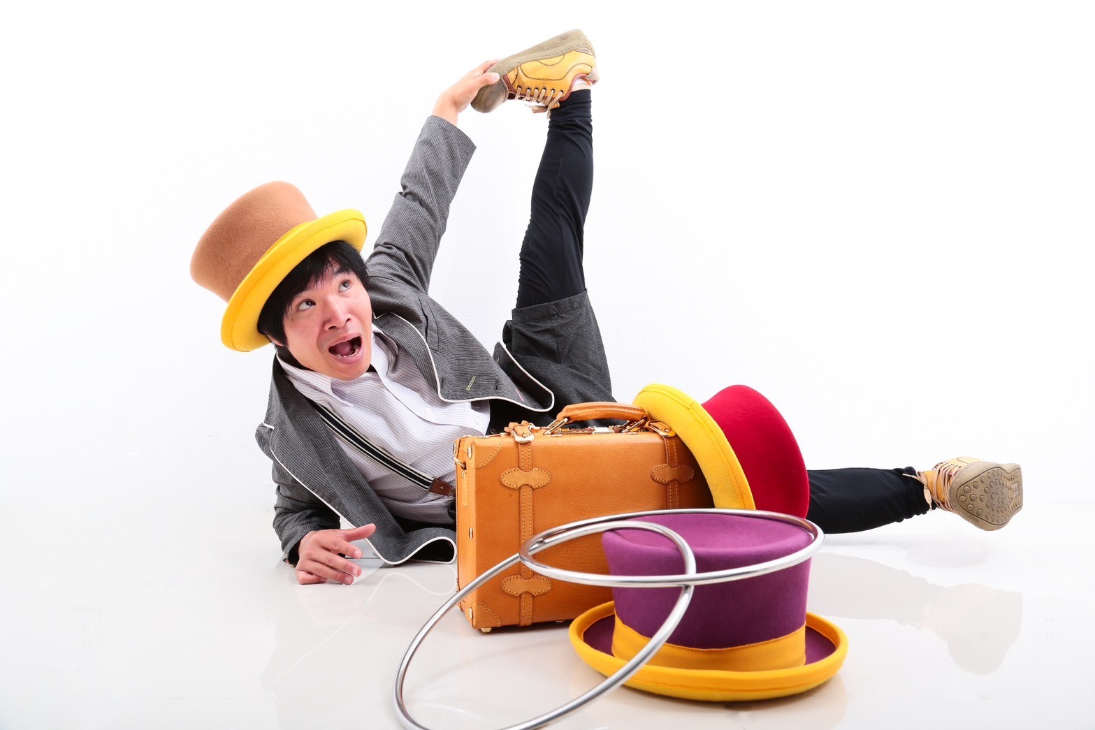 クラウニング(道化芸)をベースにマジック・ジャグリング・パントマイム・バランス芸・サウンドアクト等、数々の演目を独自の視点で誰にでも楽しめるコメディショーを展開する。