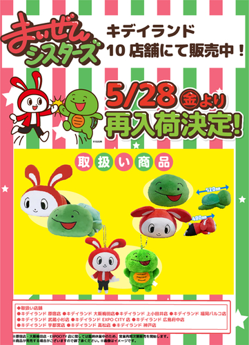5月28日(金)「まいぜんシスターズ」ぬいぐるみ再販売スタート@キデイランド10店舗 株式会社キデイランド 2021-05-25 20:00 5月28日(金)より「#まいぜんシスターズ」ぬいぐるみ再販売いたします 関東 武蔵小杉店 / 宇都宮店 中部 上小田井店 関西 神戸店 四国 広島府中店 / 高松店 九州 福岡パルコ店 ※臨時休業中の原宿店・大阪梅田店・EXPOCITY店は営業再開後からの販売となりますのでご了承くださいませ ジャンル: エンタメ ライフスタイル タグ: マイッキー ぜんいち まいぜんシスターズ 画像一覧 一括ダウンロード