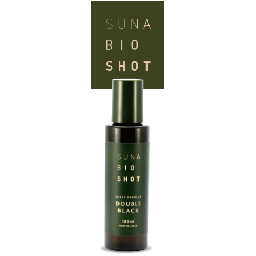 SUNA BIOSHOT 植物のチカラとナノ技術による ダブルブラックの有効成分が、 より深くスムーズに頭皮へと浸透。