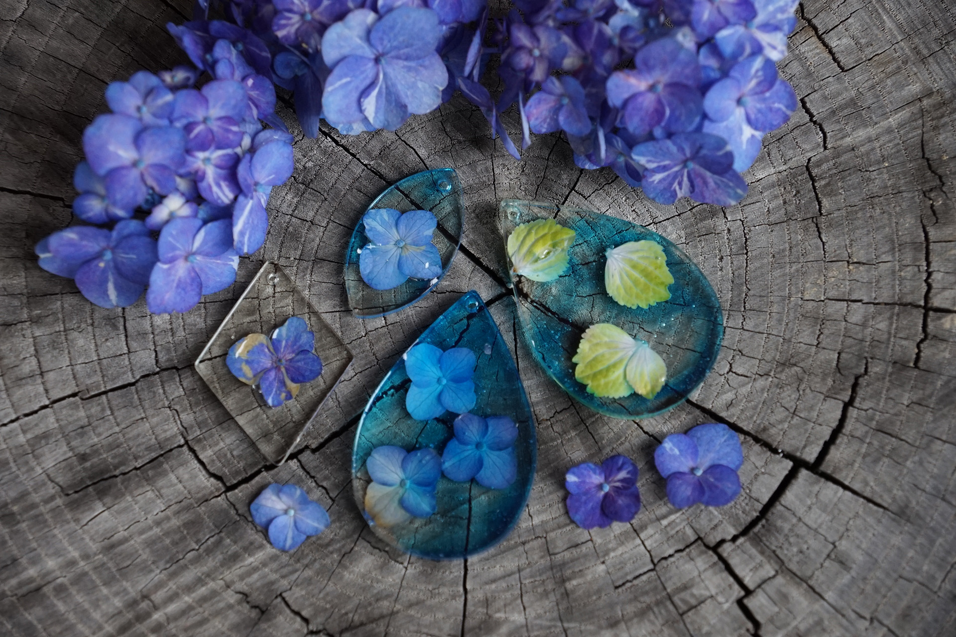 ・6月21日(土)・22日(日):あじさいアクセサリー制作(透明樹脂であじさいの花を閉じ込める)