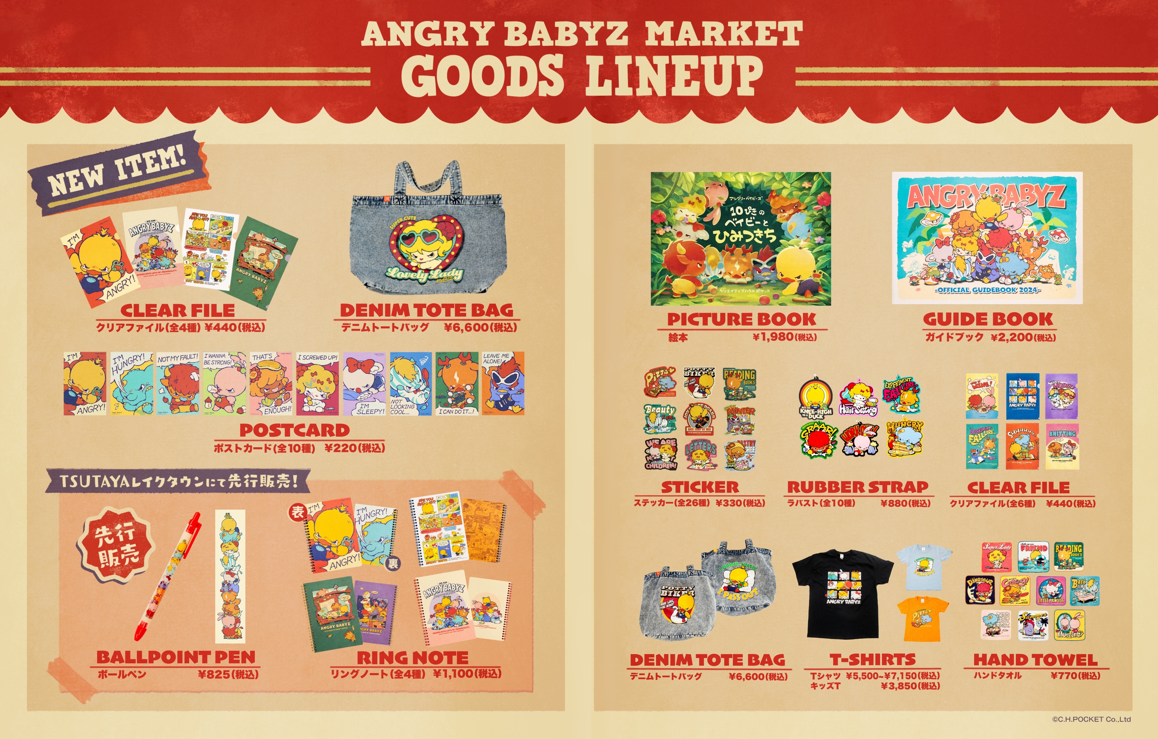有限会社クリエイティブハウスポケット(本社:東京都調布市、代表取締役:野口 式一)は、2025年6月14日(土)~7月21日(月・祝)の期間、明文堂書店TSUTAYAレイクタウンにて【AngryBabyz(アンベビ)】のポップアップショップ、『アンベビマーケット』を開催いたします。