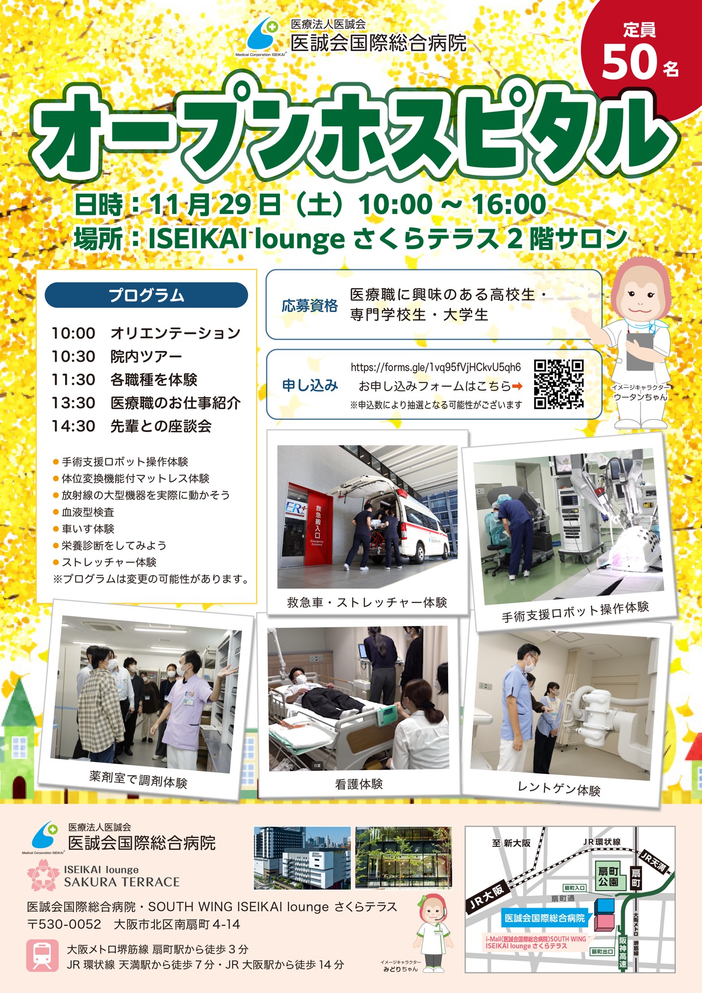 医療法人医誠会(本社:大阪市北区、代表者:谷 幸治)は、2025年11月29日(土)、医誠会国際総合病院にて「第2回オープンホスピタル」を開催します。本イベントは、医療職に関心をもつ高校生・専門学校生・大学生を対象に、病院の内部を実際に見学し、さまざまな医療職の仕事を体験できる機会として実施するものです。多職種の連携や最前線の医療環境を身近に感じることで、学生が医療現場のリアルに触れ、理解を深める機会を提供します。