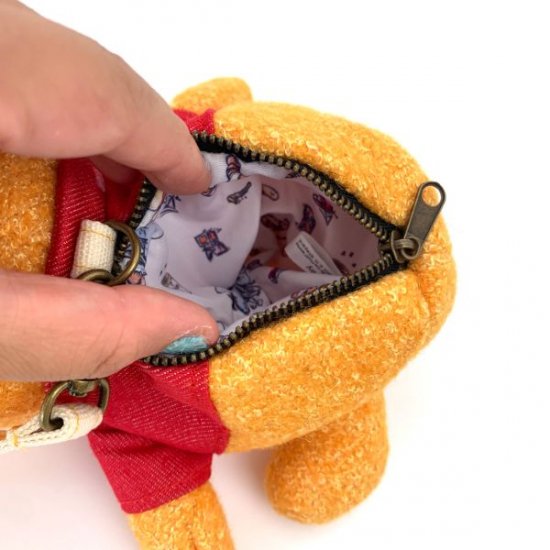 プーさんのファスナーを開けば小さなポケットが登場♪なかの裏地は細かく描かれた水彩画のプーさんとその仲間たちが!なかまで可愛いのはさすがです。
