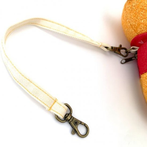 うしろには取り外し可能なストラップが付いているので、バッグなどにお付けいただけます。金具部分もアンティークカラーでおしゃれなハイクオリティ。