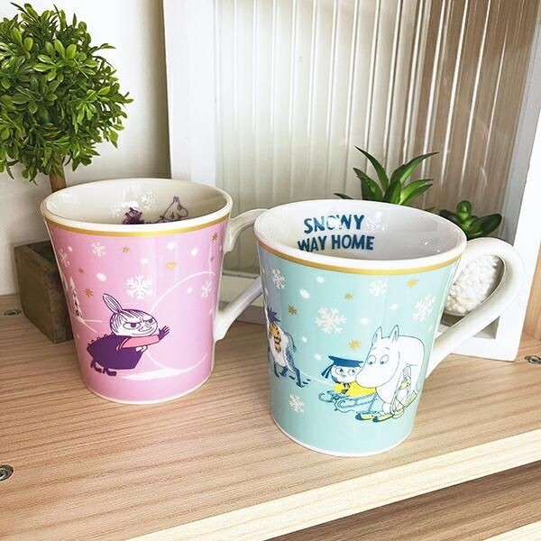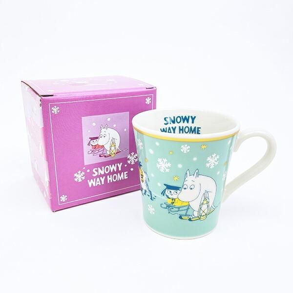 ムーミンたちのなにげないワンシーンデザインにほっこり。ムーミンたちの冬のワンシーンが描かれたSNOWY WAY HOMEシリーズのマグカップです。