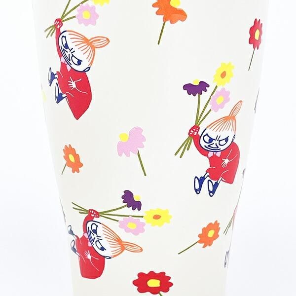 タンブラーいっぱいにキュートなリトルミイがカラフルにデザインされています。カラフルでだけどどこか素朴さもある華やかなデザインが大人の方にも使いやすそうなデザインです。