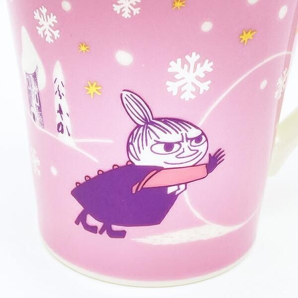ムーミンたちの冬のワンシーンが描かれた「SNOWY WAY HOME」シリーズのマグカップでとムーミンの愛らしいデザインにきれいな雪の結晶をあわせたアート要素も感じるおしゃれなマグカップです。