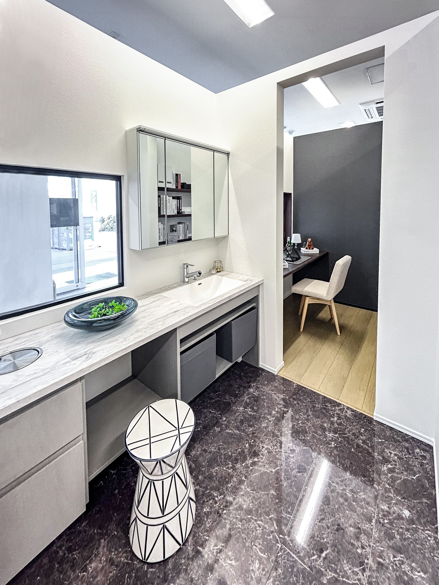 「名取店」は、JR東北本線「名取」駅から徒歩13分、名取市役所のすぐ近くに位置し、9台分の駐車場を完備しています。最新の住宅設備や内装建材を展示したショールーム型の店舗で、キッチン・バスルーム・洗面化粧台などを実際に見て、触れて、その機能性やデザイン性を体感いただけます。理想の住まいを、より具体的にイメージしていただける空間となっております。