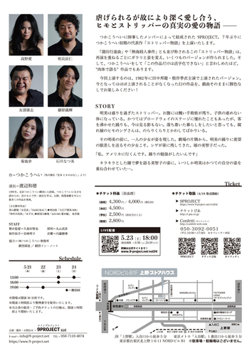 つかこうへいに師事したメンバーによって結成された、9PROJECT。これまでも、70〜80年代の初期のつかこうへい作品を多数上演してきましたが、第24回公演では、つかこうへい初期の代表作「ストリッパー物語」を上演いたします。