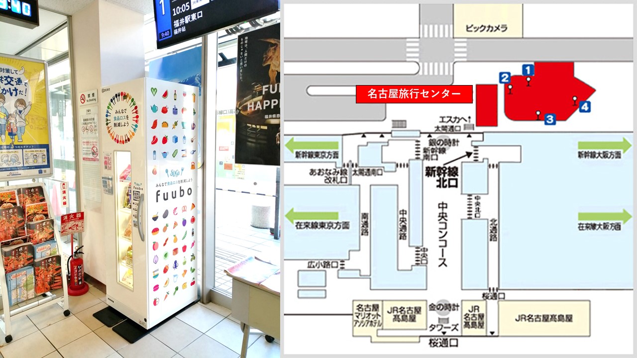2022年11月21日、ジェイアール東海バスは、食品ロス削減を目的とした無人販売機「fuubo(フーボ)」を名古屋旅行センター待合室内(所在地:名古屋市中村区椿町4番1号)に設置しました。
