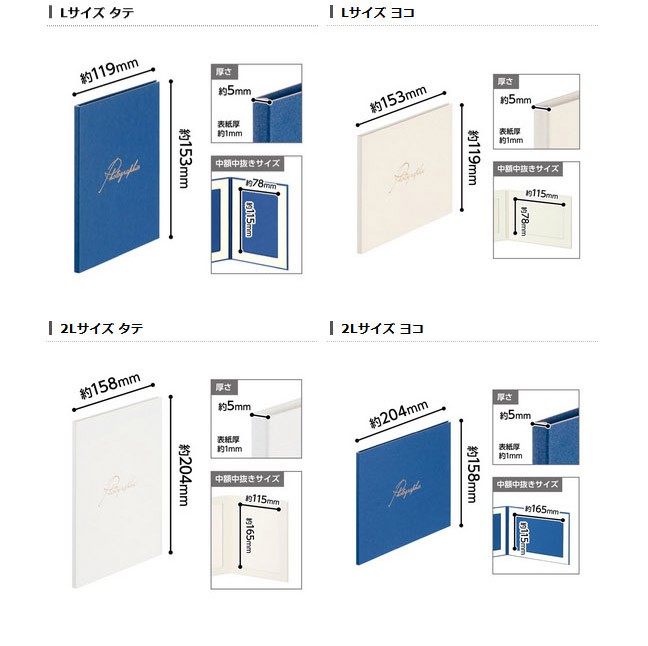 中額にはほどよい厚みがあり、セットした写真やカードをしっかりと保持しながら、上質な雰囲気を漂わせます。開いた瞬間に想いが伝わる美しい仕上がりです。