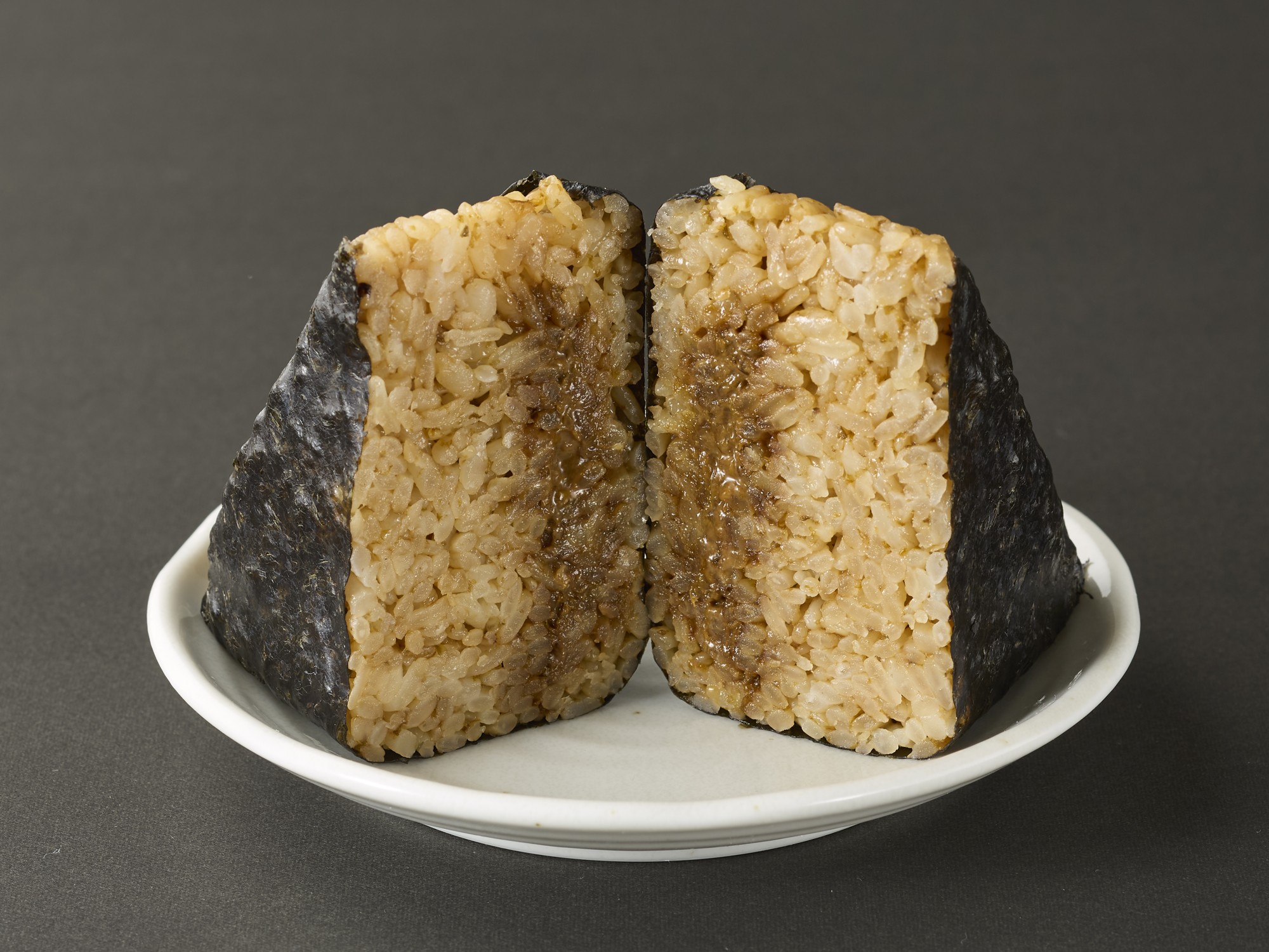 ●商品特長:のり佃煮入りのだしごはんに、のりマヨをトッピングし、のりで巻いたのりづくしのおにぎりです。