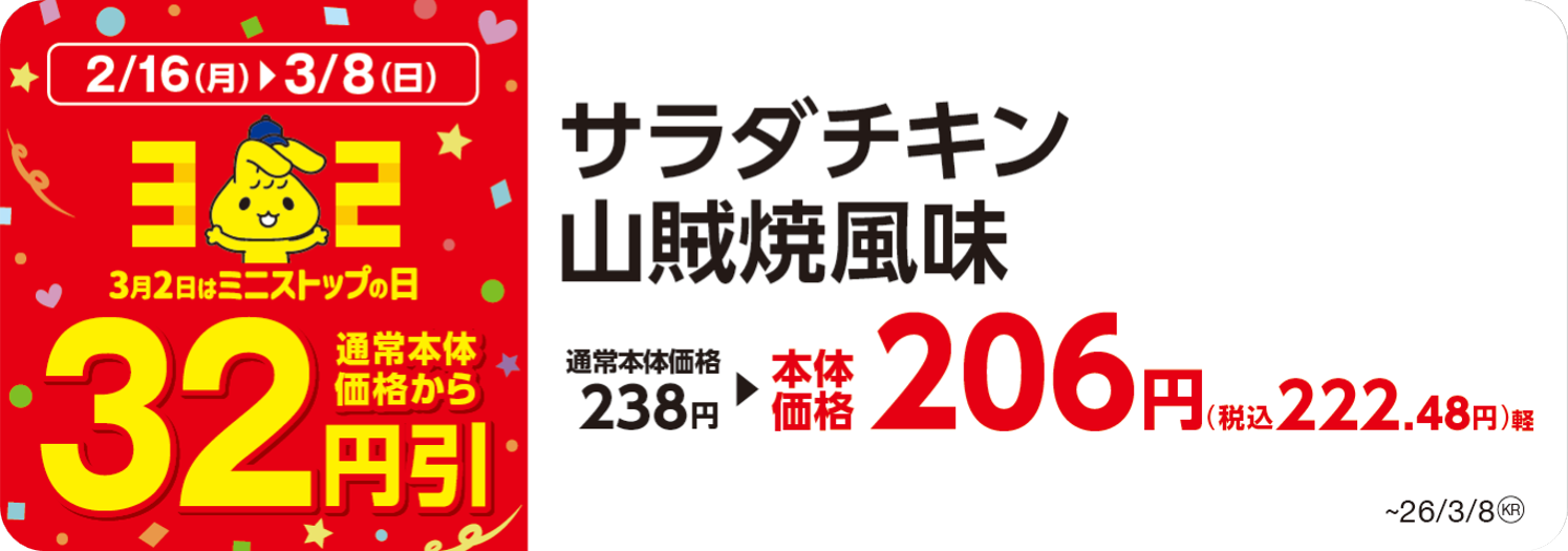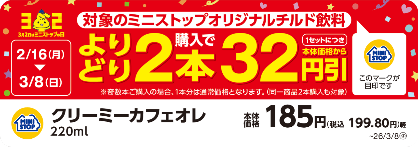 3月2日はミニストップの日 ミニストップ大感謝祭!32(ミニ)にちなんで32円引の企画を様々ご用意いたしました!