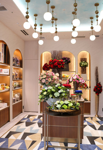 新店舗のテーマは「ラグジュアリーホテル」。上質な空間で温もりあるホスピタリティをさらに進化させ、心地よい体験を提供いたします。1階のプリザーブドフラワー専門店ではお祝いや記念日のギフトを販売。シックなインテリアに華やかな数々のプリザーブドフラワーが並び、高さ6m50cm・幅1m60cmの苔のプリザーブドフラワーの壁面装飾や特徴的なライティングが贅沢な空間を演出しています。また、ホーム・オフィス・ショップ等のインテリア装飾をオーダーメイドで提案する新サービス「Maison(メゾン)」をスタートし、2階のVIPルームでご要望をもとにフラワーデザイン装飾の専任チームが、唯一無二の作品をご提案いたします。