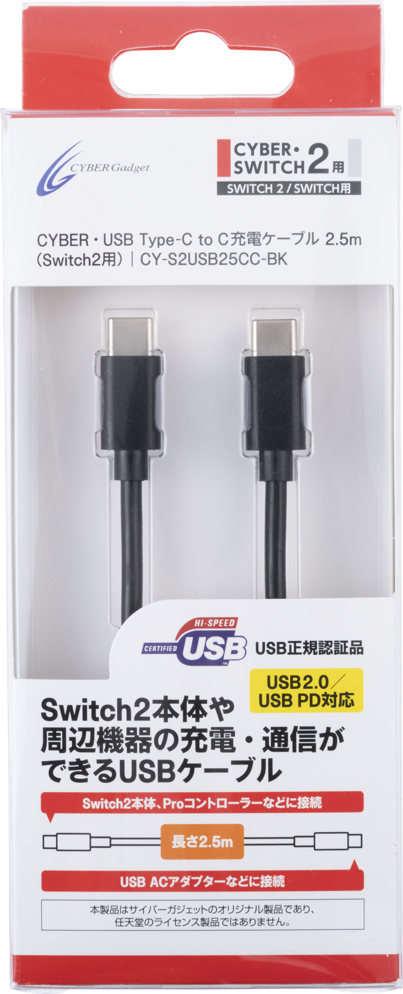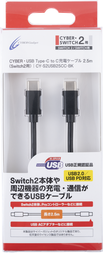 『CYBER・USB Type-C to C充電ケーブル 2.5m(Switch2用)』製品概要
