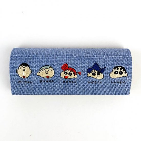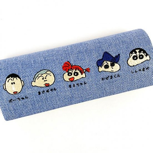 そしてこちらは、しんちゃんと仲良しのお友達がちび刺繍になっているデニム生地のメガネケース♡生地感がお洒落な上に、あえてキャラクターのお顔だけを5人並べて刺繍してあるところが、白色とは違う可愛さがでています♫
