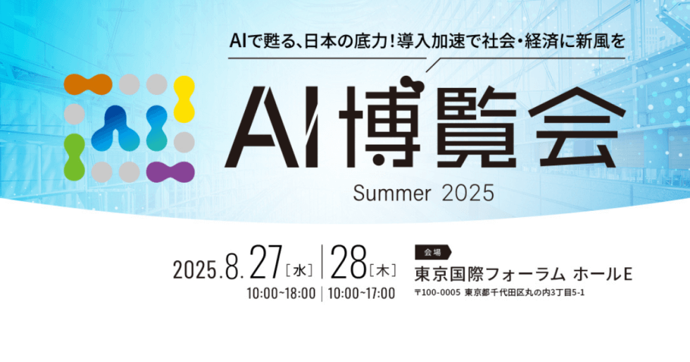 「AI博覧会 Summer 2025」は、AI・人工知能に焦点を当てた展示会であり、最新の技術やプロジェクト、業界のトレンドにフォーカスしています。日本国内のAI関連企業や専門家が集まり、展示、講演、デモンストレーション等が行われます。