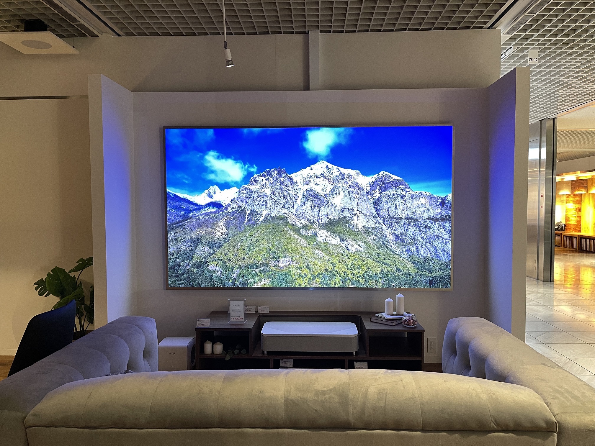 ・超短焦点プロジェクターを使用した明るい演出のホームシアター体験