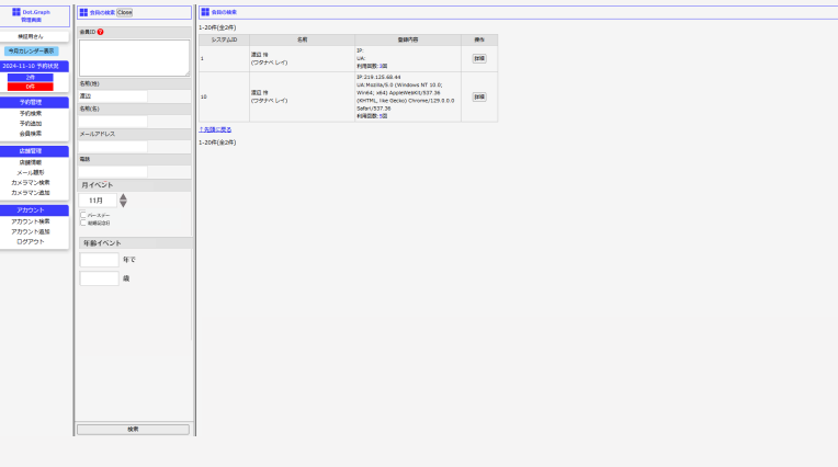 渡辺:この顧客検索も、カメラマンならではでしたよね。「今月に誕生日の人は誰か」「次の4月に小学校に入学する子は?」といった、撮影のきっかけとなるような検索を行えるようにしております。
