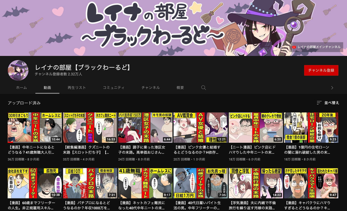 レイナの部屋 ブラックわーるど(チャンネル登録者約2万人)