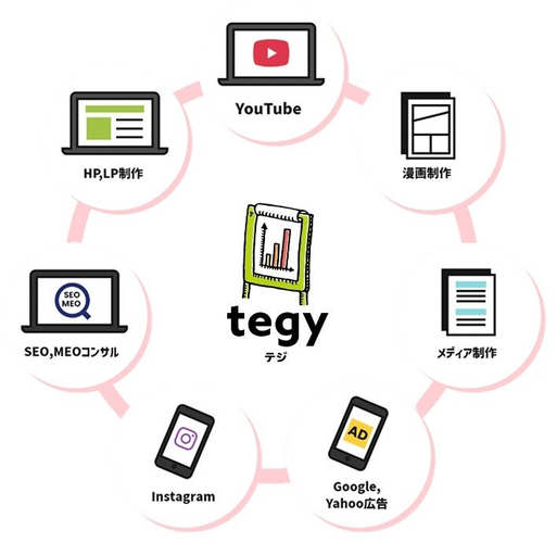tegyはクライアント様と共に様々な課題をWebマーケティングを駆使して問題解決してきました。