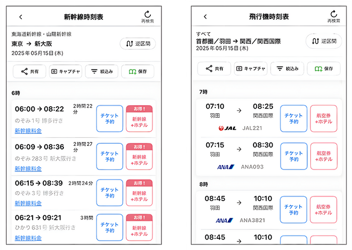 ・時刻表 (新幹線・飛行機):