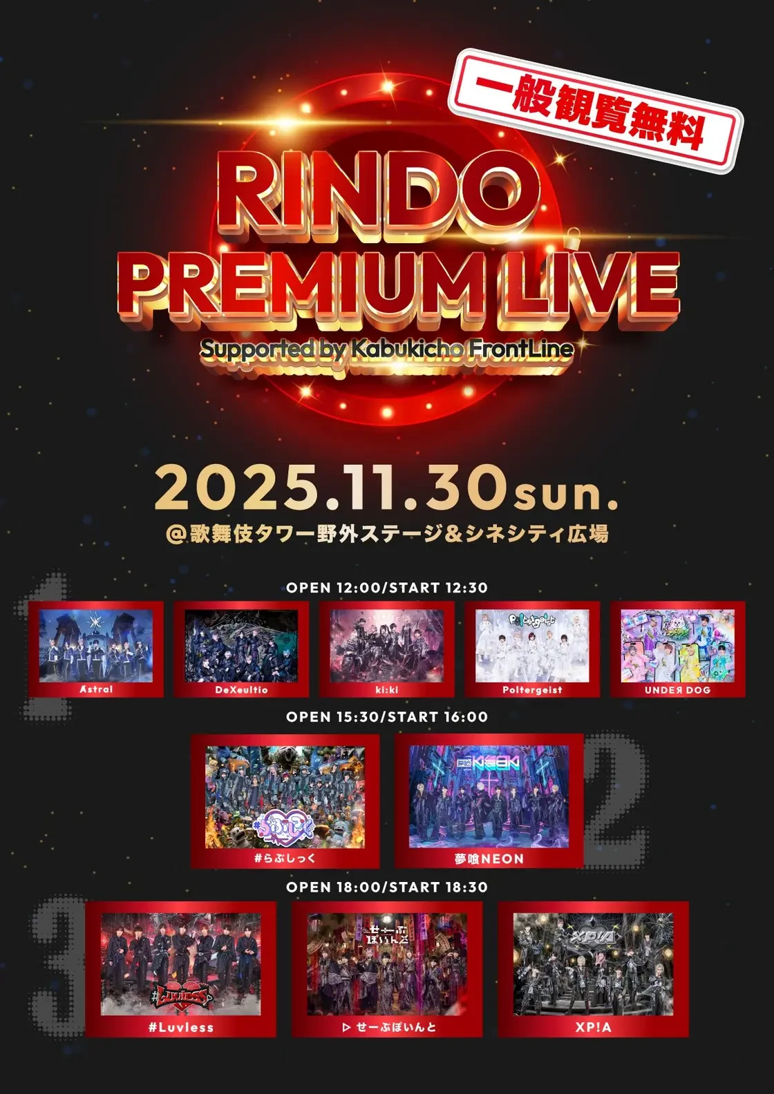 株式会社ケテル(本社:東京都渋谷区、共同代表:丸本貴司・岩渕俊明、以下ケテル)は、11月30日に開催した『RINDO PREMIUM LIVE』(主催:ケテル)について、歌舞伎タワーおよびシネシティ広場にて実施し、延べ6,000名を超える来場者で大盛況のうちに終了しました!