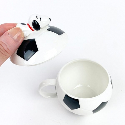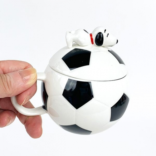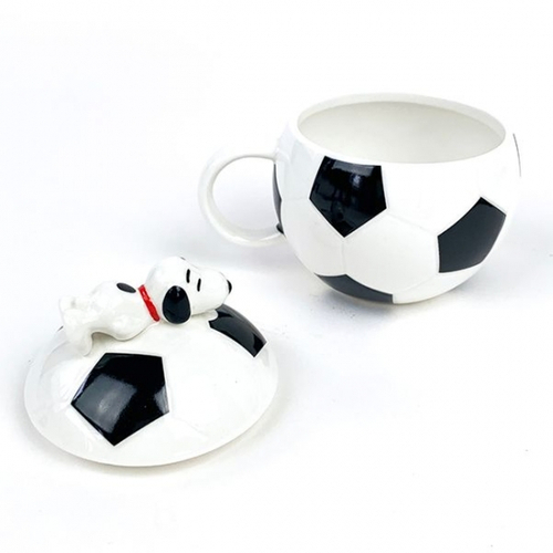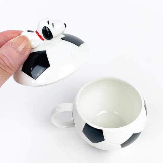 コロンと真ん丸なフォルムにフタがついていて、見た目はサッカーボールそのもの♡フタの上にはスヌーピーのフィギュアもついていてかわいいんです。