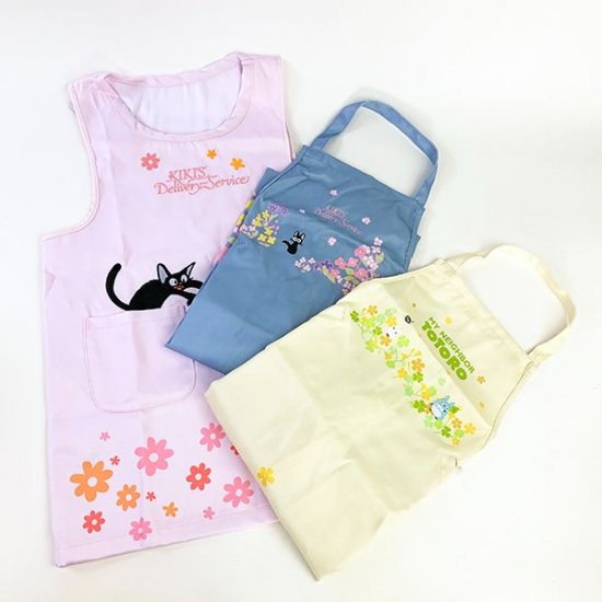 ジブリのかわいいキャラクターたちがデザインされたエプロン。いつもの家事やお料理の時間が、もっと楽しくなりそうですね♪