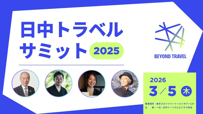 新たな「共創」の場づくりを目指す一般社団法⼈⽇中ツーリズムビジネス協会(東京都新宿区 代表理事 王璇、以下CJTC)は、2026年3月5日に第8回目となる『日中トラベルサミット2025』を東京スカイツリーイーストタワーにて、リアル形式で開催します。