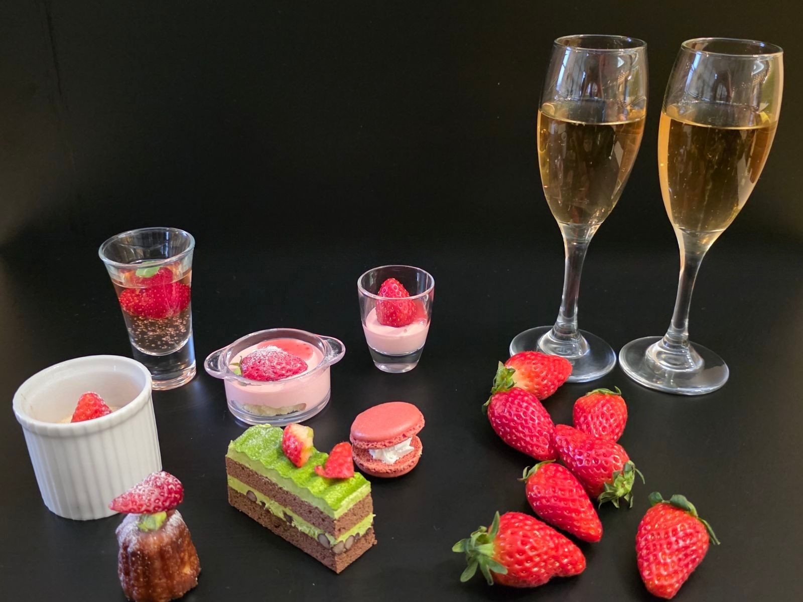 苺と抹茶のカヌレ/苺のシフォンケーキ/苺抹茶タルト/苺のマカロン/苺のブリュレ