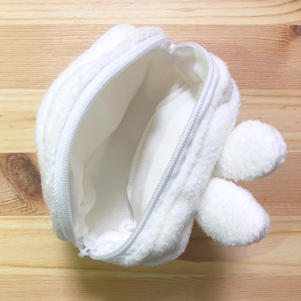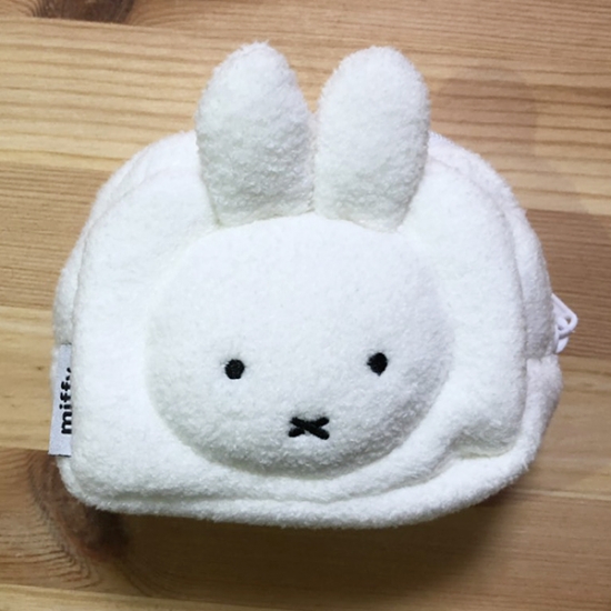 ふわふわもこもこの生地がオススメのポーチです。真っ白でふわふわ感あるますね~。立体的にデザインされたミッフィーもかわいいんです。105×75×50mmのコンパクトサイズで、使いやすさも◎