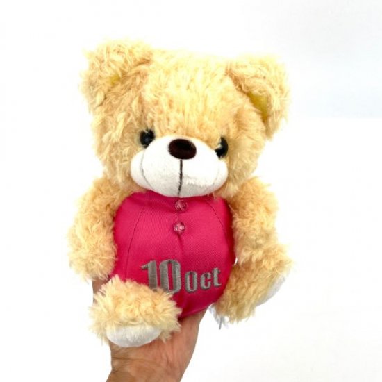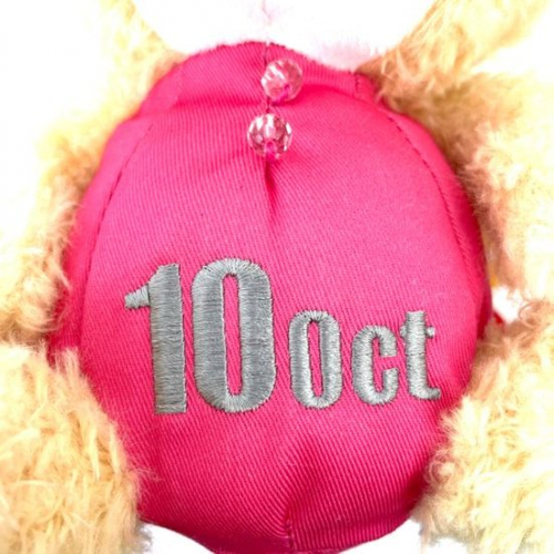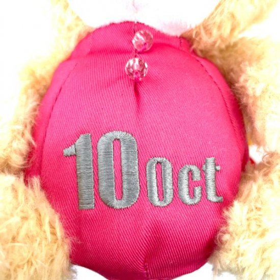 お腹には「10 Oct」の刺繍。そして、10月の誕生石であるピンクトルマリンがキラキラしています☆トルマリンは美容の石とされていて、特にピンクトルマリンは恋愛運に良い石なんだとか♡