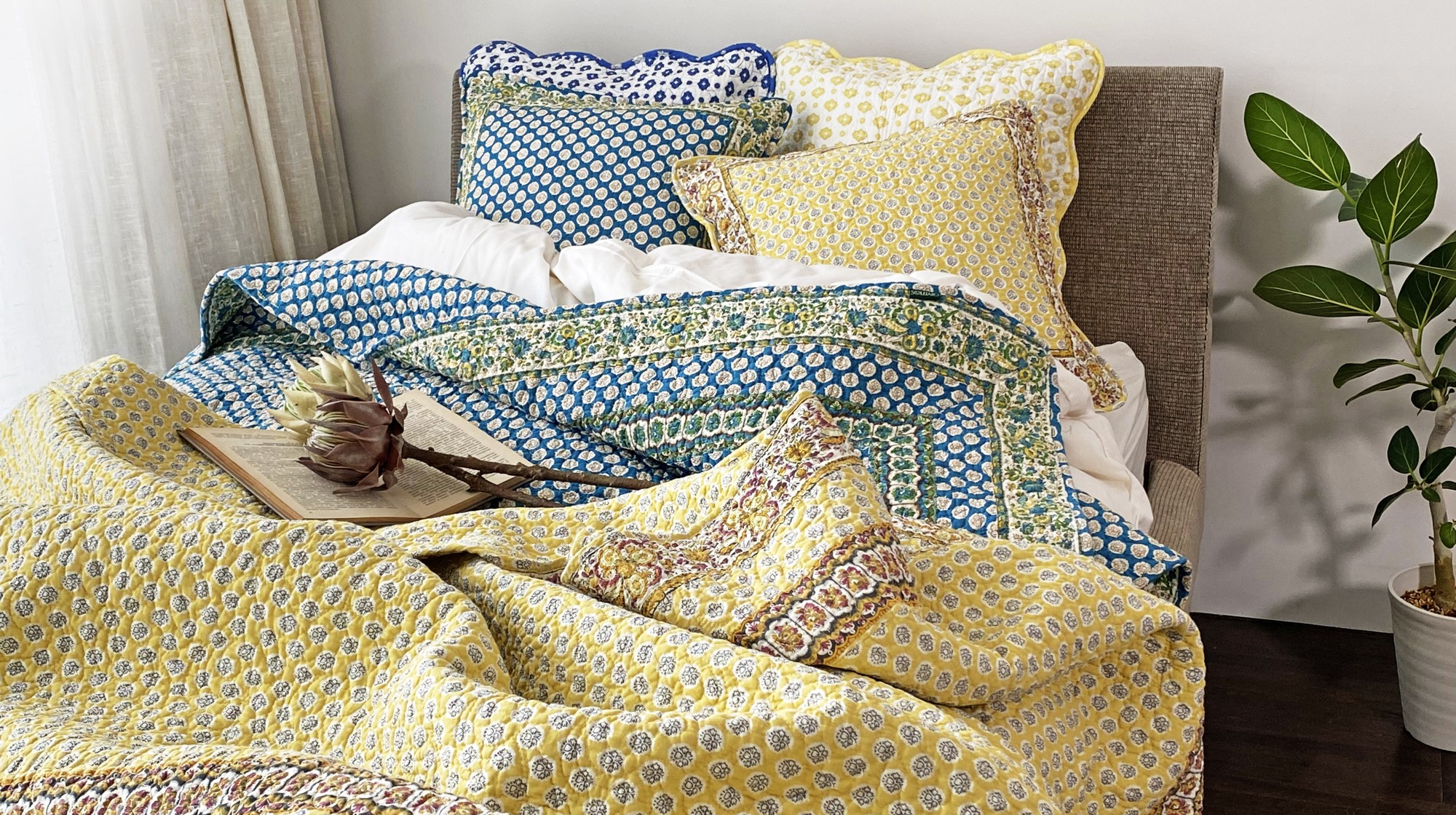 プロヴァンスの伝統柄をモダンに再解釈した美しいプリントファブリックが、リビングやベッドルームに軽やかな表情を添えます。