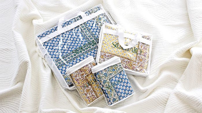 いすれの商品もソレイアードロゴの収納袋付きです。