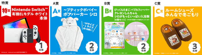 期間中、下記の「クレヨンしんちゃん」ゲームシリーズ総合アカウントをフォローし、キャンペーン対象ポストを引用リポストいただいた方の中から抽選で合計8名の方に、寒い冬に嬉しい「あったかグッズ」をプレゼントいたします。