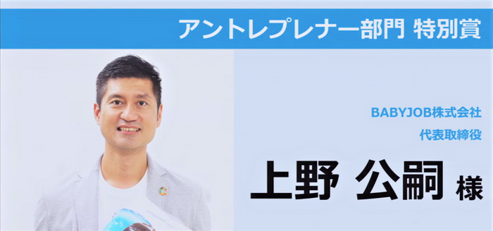 今回、BABY JOB株式会社がアントレプレナー部門にて「特別賞」を受賞いたしました。