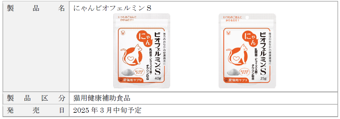 ※ 「にゃんビオフェルミンS」は2025年3月中旬を発売予定しております。