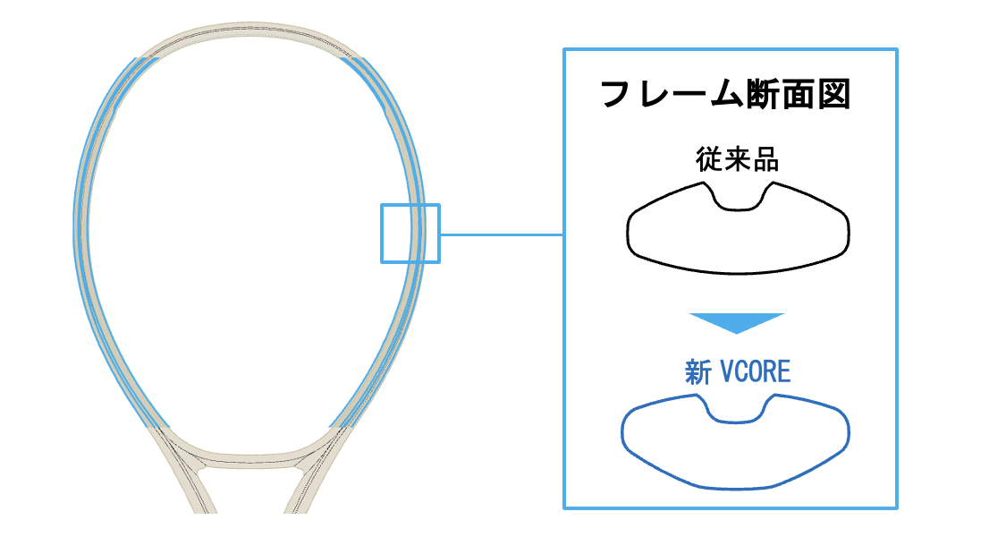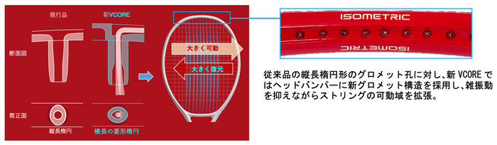 新VCOREは、高いホールド性能でボールをつかみ、よりパワフルで安定した高回転ショットを実現します。
