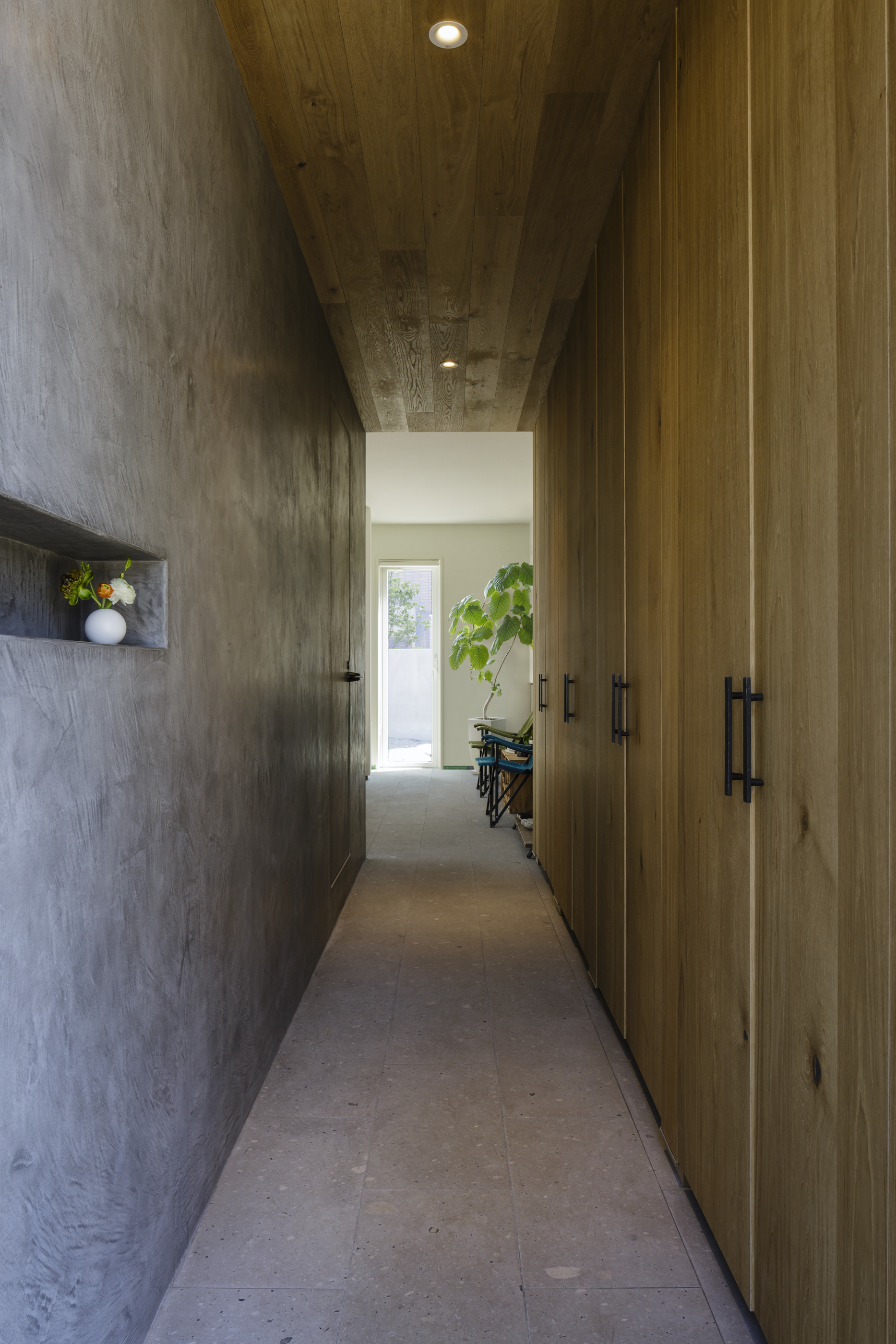 こだわりは内装だけではありません。外観や庭にもさまざまな創意工夫を施しています。シンプルな長方形の箱を置いたような外観は、「周辺環境に溶け込み、元からそこにあったかのようなさりげない佇まい」(夫・R)を目指したそうです。