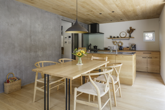 夫妻が特に気に入っているのは、夏の午前中。無垢のナラ材で作ったキッチンを活かしたダイニングには、朝日が差し込み、気持ちよく朝食をとることができるそうです。ダイニングや二階も空間でつながっていることで、風通しがよく、さわやかな風を感じることが出来ます。夏でもエアコンをほとんどつけたことがない」というからかなり過ごしやすいようですね。