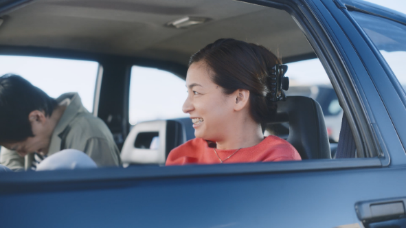 その後の車内の様子へ。これまでの空気とは、うってかわり、仲睦まじい夫婦の掛け合いが始まる。