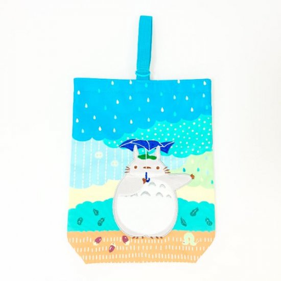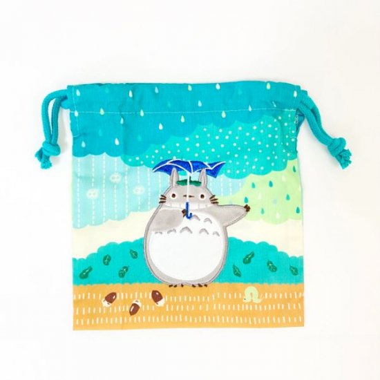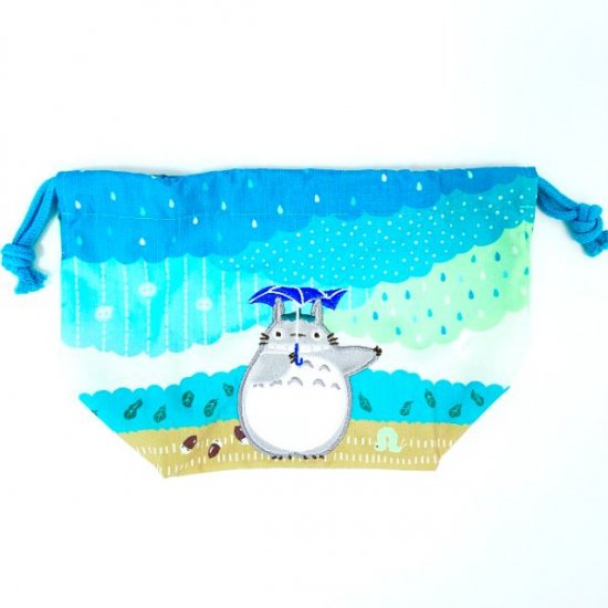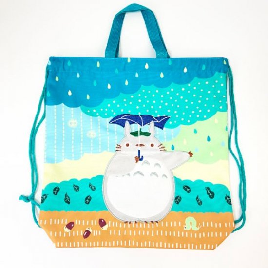 雨の中傘をさしているトトロのイラストがキュートな、ナップサックです。幼稚園や小学校などの通園や通学にお役立ちで、体操服入れなどに使えます。