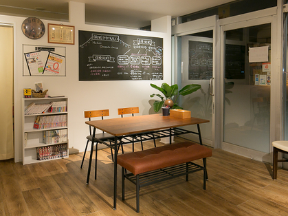 待合スペースにはウッド調のテーブルと椅子が配置されており、女性の方でも気軽に通えて、行くのが楽しみになるようなモダンな雰囲気となっています。店内の照明はオシャレな間接照明となっていて、明るすぎず落ち着いたこだわりの空間が演出されており、女性に好評です。