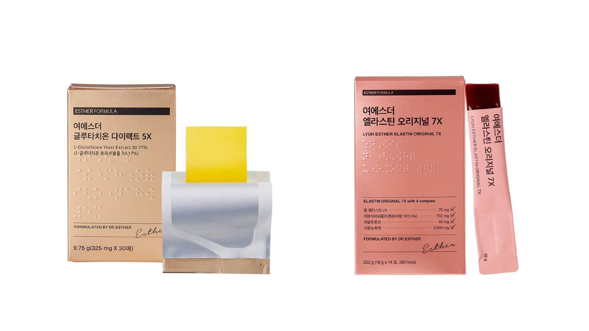 韓国プレミアム健康機能食品ブラント「エスターフォーミュラ」は、「私の家族が摂取できる健康機能食品を作る」の哲学を基に、インナービューティーから健康に役に立つサプリまで現代人に不足しがちな栄養素を固有の配合比で製造し販売するブランドであり、すべての原料は世界有数の原料会社または論文、試験成績書で検証されたもののみを使用するのがこだわりです。